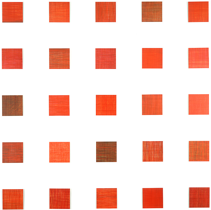 wie Rot ist Rot, 2000-14, 25 -teilig, je 20 x20 cm, Gouache auf Baumwolle